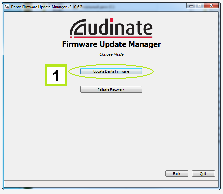 Для обновления прошивки модуля Dante Brooklyn 3 используется ПО Dante Updater, которое является частью Dante Controller.