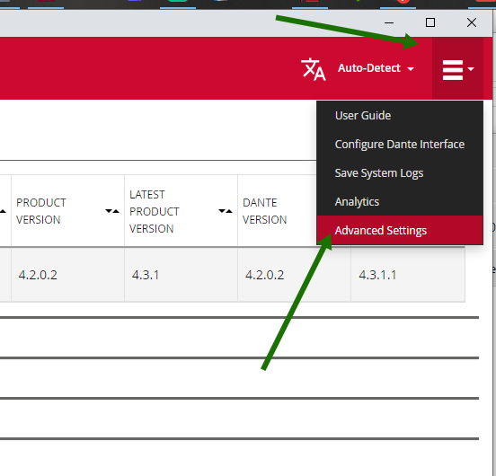 - При первом запуске ПО Dante Updater нужно проверить настройки ПО